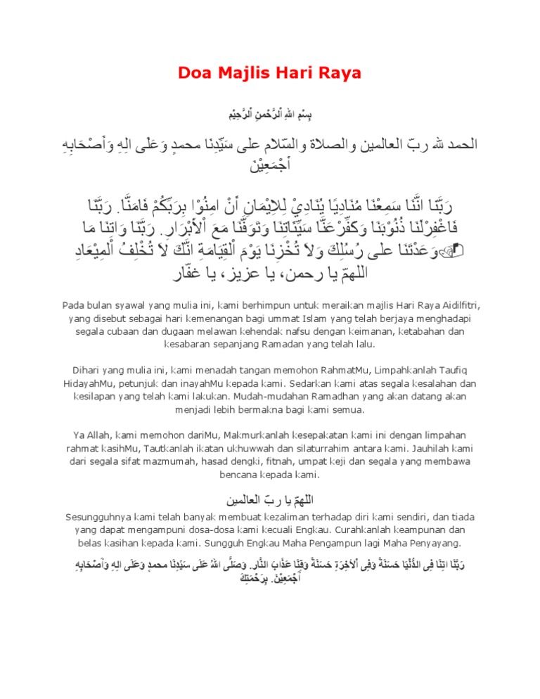Doc Doa Majlis Sambutan Hari Raya Aidilfitri Dokumen Tips